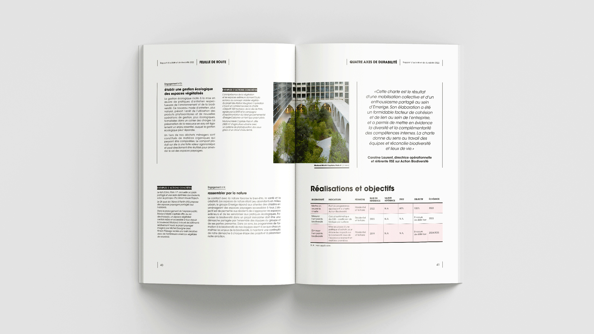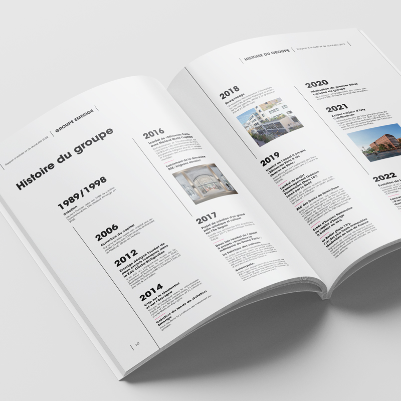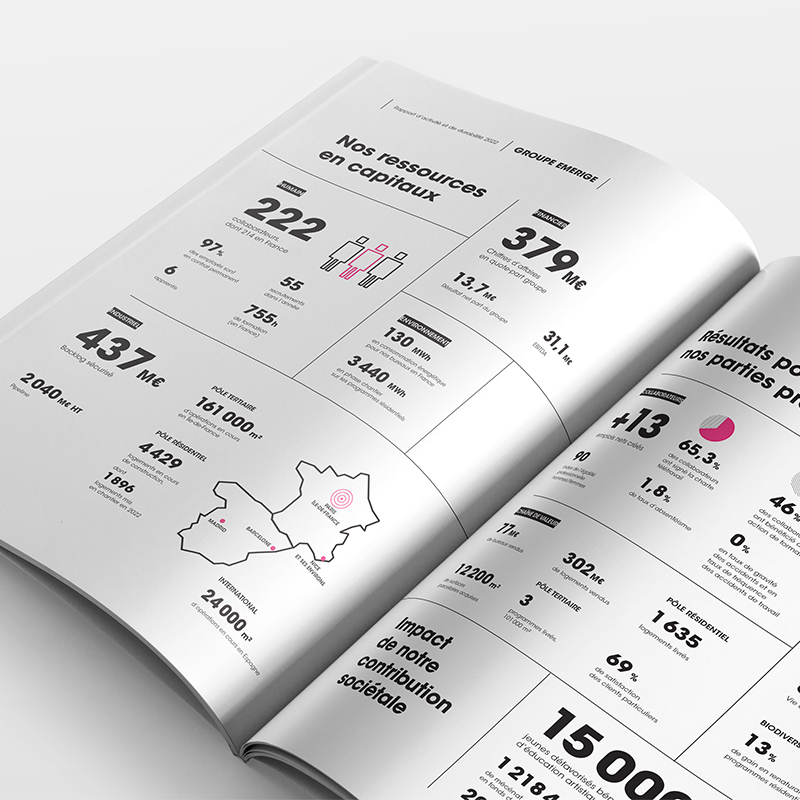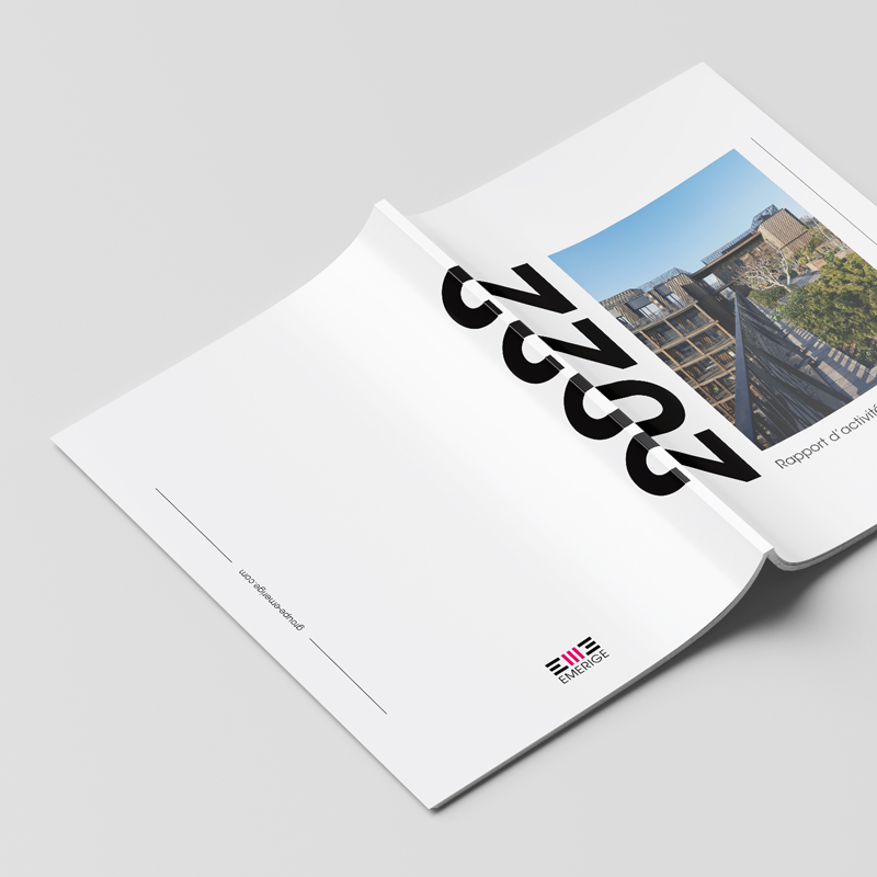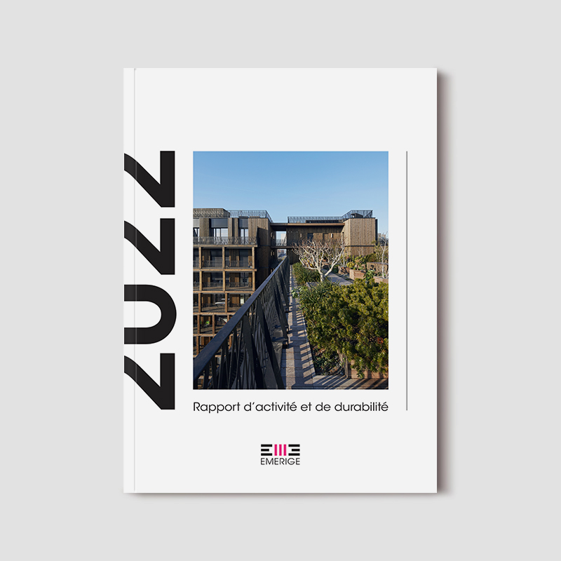 Réalisation du rapport d'activité et de durabilité 2022 du promoteur immobilier Emerige. Ce document a pour objectif de présenter le groupe ainsi que ses activités durant l'année.