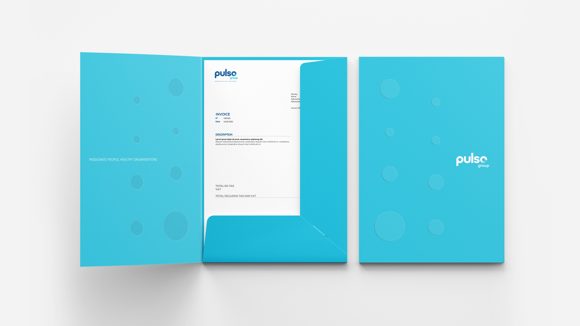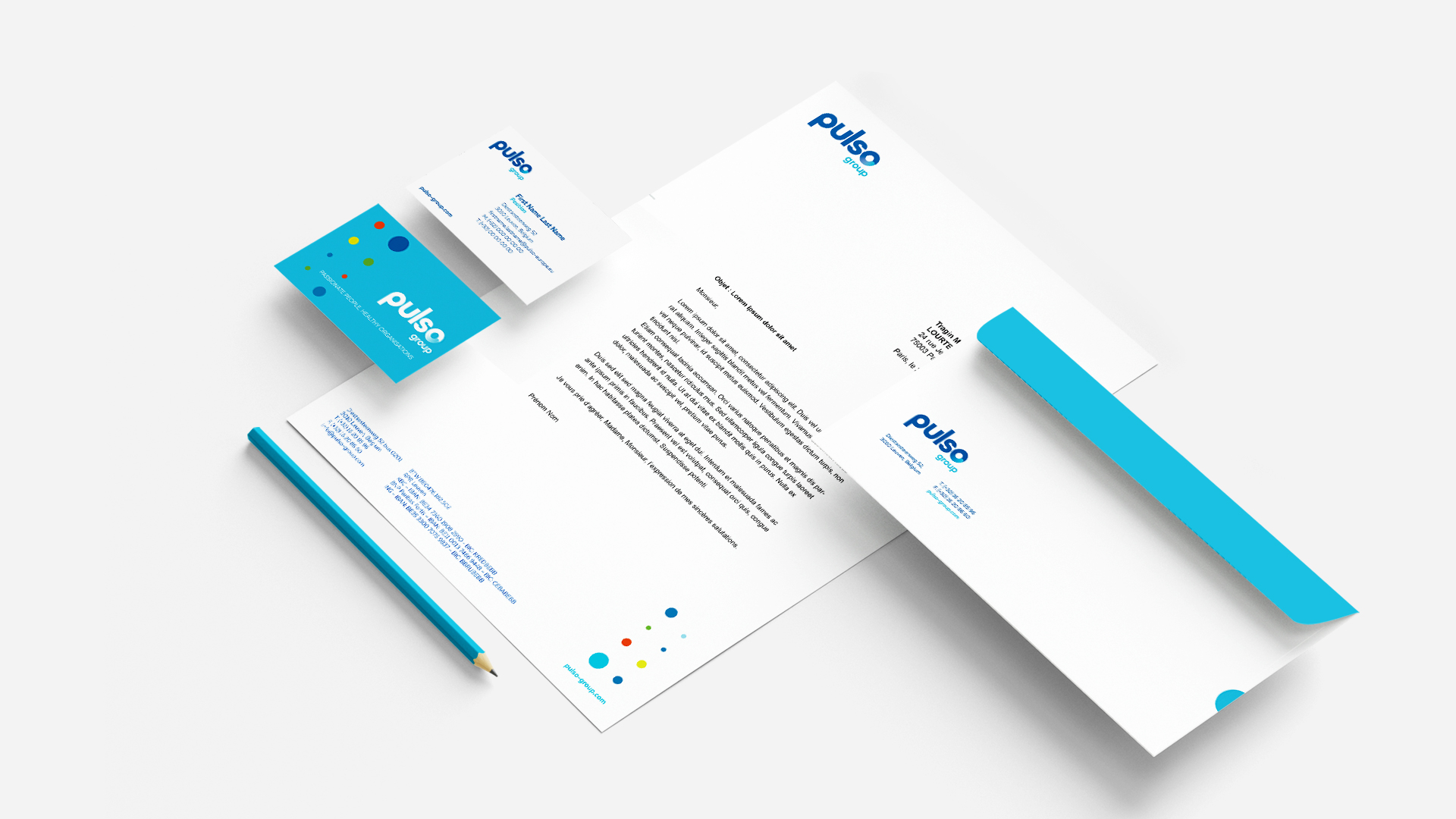 Pulso Group est spécialiste du bien-être psychosocial dans le milieu du travail. Présent à l'échelle européenne, le groupe dispose d'outils en ligne et intervient directement dans les entreprises sous forme de coaching. L'entreprise est en plein essort et se développe dans plusieurs pays, Pulso Group souhaitait donc avoir une nouvelle identité.